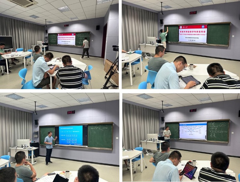 8月25日上午9点,司机社 在物理科技楼412微格教室组织开展了新教师课堂教学专家咨询会,暨现代物理学课程群虚拟教研室第六次会议,教学督导戴苏明和须萍教授进行了现场指导,现代物理学课程群虚拟教研室成员朱成杰、史振中、赵永峰、陈垂针、刘波、周宇等老师参与研讨活动,本次活动由副院长周丽萍、杭志宏共同主持。
