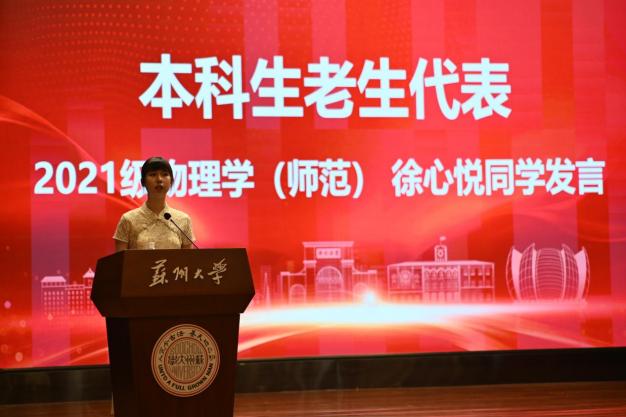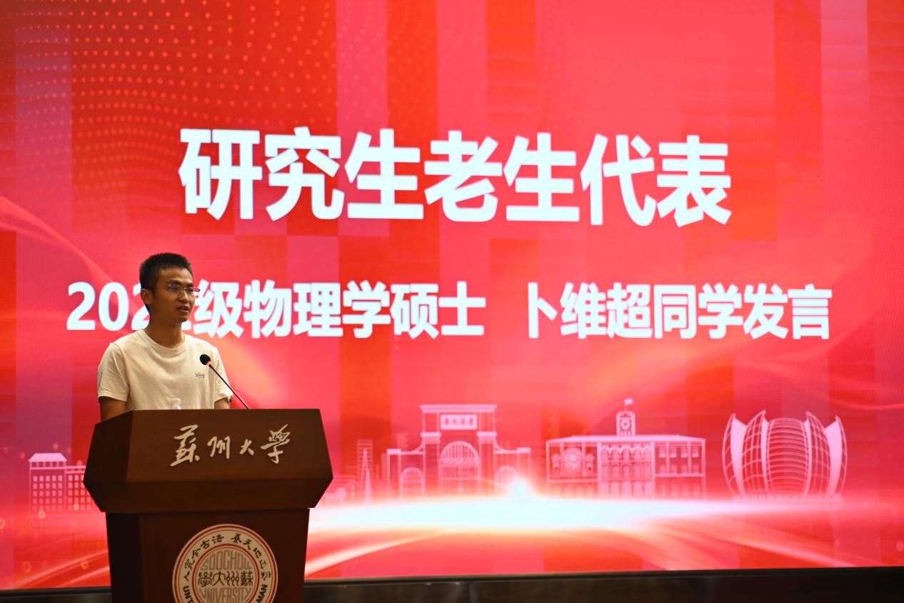 2021级本科生徐心悦同学和2022级研究生卜维超同学分别作为本科生和研究生老生的代表,上台分享了他们的宝贵经验。徐心悦同学结合自己的大学生活,鼓励新生们要明确自己的学习目标和生涯规划,同时也要注重生活的平衡与丰富,期待新生们可以点亮自己的梦想星光;卜维超同学向新生们传达了他对大学生活的深刻理解。他寄语新生们要勇于探索未知,积极团结协作,珍惜在大学中的每分每秒,勤奋学习,并且追求全面发展。他的发言充满了对新生们的激励与期待,希望他们能够在大学这个新起点上,不断超越自我,成就辉煌。