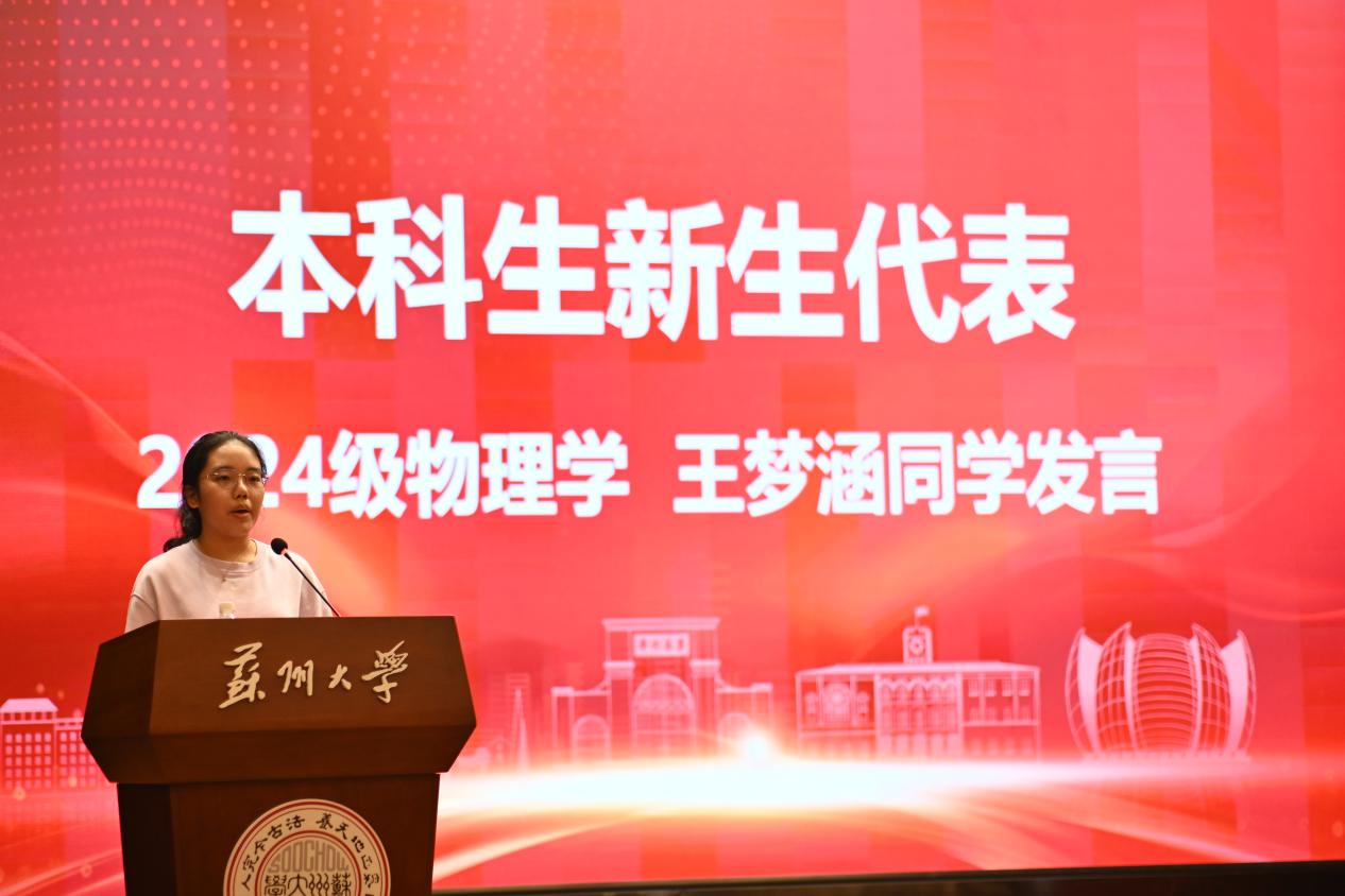 2024级物理学王梦涵同学作为本科新生代表发言,激励全体新生在新学期中追求卓越,勇于探索。她中强调了追梦和奋斗的重要性,鼓励同学们在物理学的探索中,要勇于从零开始,积极调整自我,以适应新的学习环境和挑战,呼吁新生们在追求学术成就的同时,也要培养高尚的品德和责任感。王梦涵的发言不仅激励了新生,也体现了司机社 对学生们全面发展的期望。