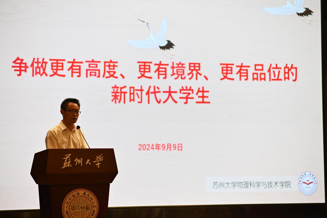 在院长的“大学第一课”中,李院长以饱满的热情和富有洞察力的话语,向新生们展开了对物理学的深刻理解,细述了物理学的发展历程、其发展过程中的重要里程碑,以及物理学未来的广阔前景和在各个领域的广泛应用。随后,李院长深入探讨了大学教育与中学教育的差异,对比了大学物理与中学物理的不同侧重点,并提出了学习大学物理的正确方法和应避免的误区。通过这些指导,院长为新生们指明了学习物理的正确路径,帮助他们在未来的学习旅程中找到方向。