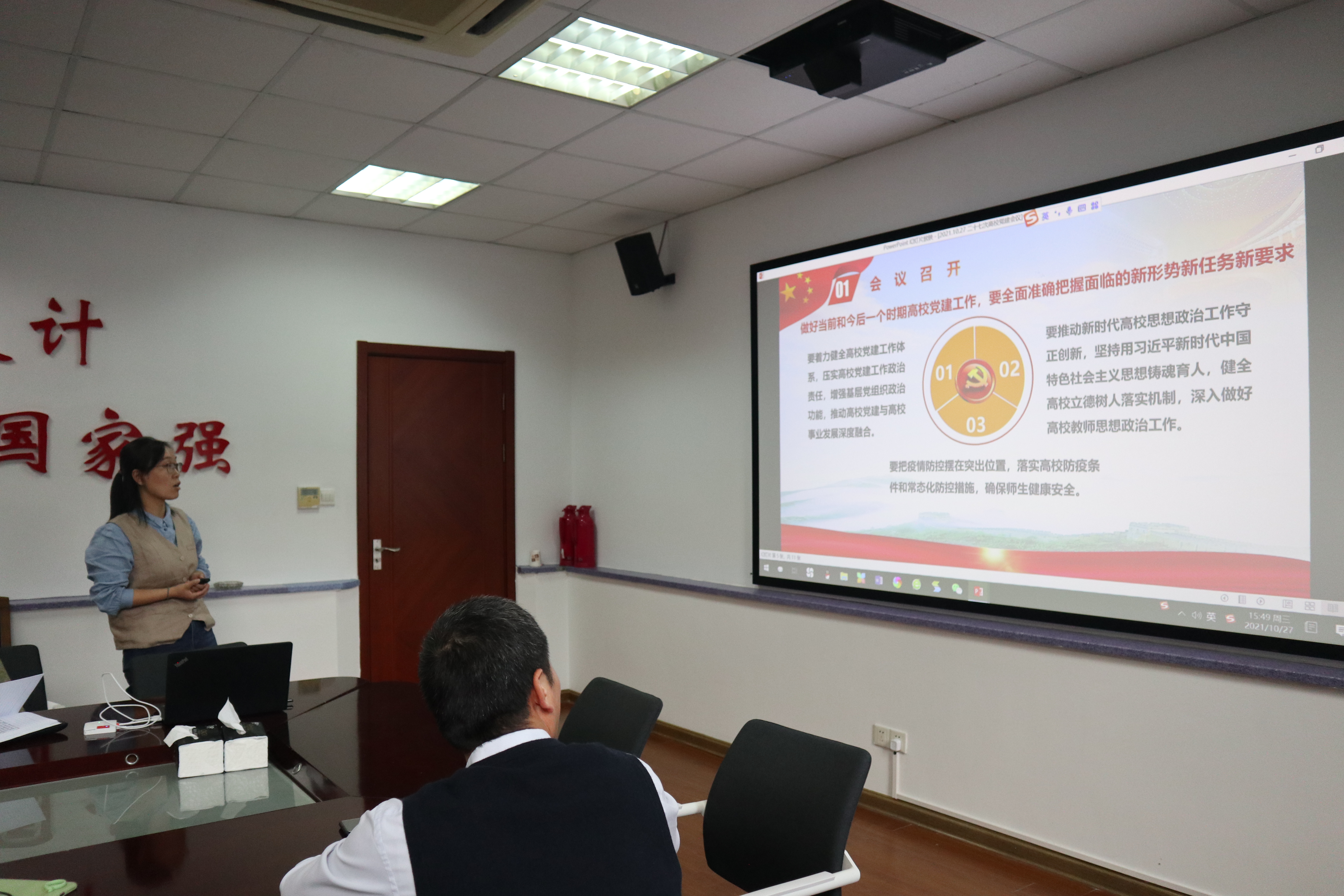 周丽萍副院长从会议概况、会议主要精神以及个人的学习体会三个方面领学了第二十七次全国高校党的建设工作会议精神。