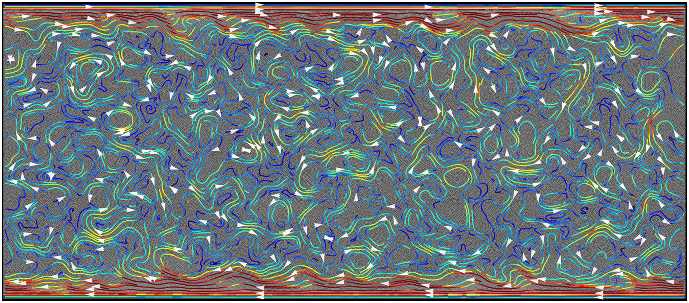 图2:弱手性自驱动粒子流体模型中各种边界下极其稳固的具有拓扑保护性质的边界流。