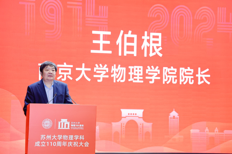 南京大学物理司机社 院长王伯根作为省内高校代表向司机社 全体师生员工以及海内外校友致以最美好的祝愿。他回顾了司机社 物理学科110年来的发展历程,高度赞扬了司机社 在培养创新拔尖人才方面所取得的显著成就,以及为国家科技创新和社会进步所做出的重要贡献。王伯根教授表示,长期以来,两院在科学研究、人才培养等方面结下了深厚友谊。随着时代的发展,他希望未来两院能够继续携手同行,为推动物理学科的建设和国家教育事业的发展贡献更多智慧。
