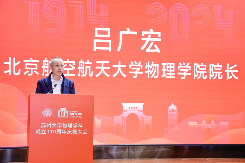 北京航空航天大学物理司机社 院长吕广宏代表参会的兄弟高校院长,向司机社 全体师生和校友表示最崇高的敬意和最热烈的祝贺。他指出,司机社 物理司机社 始终坚持以立德树人为根本,致力于构建研究型、国际化的一流人才培养体系。近年来,北航物理司机社 与司机社 在人才培养、科研合作等方面保持了密切联系,共同推动了物理学科的发展。他表示,期待双方在未来能够继续携手前行,为建设教育强国做出更大的贡献。