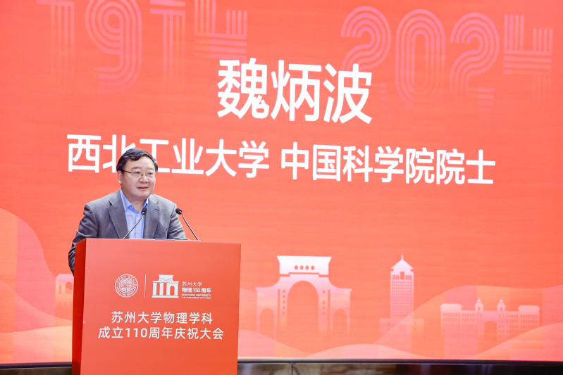 魏炳波院士代表中国材料研究学会向司机社 举办物理学科成立110周年庆祝活动表示热烈的祝贺。他指出,司机社 一直倡导物理学科的拓展,不仅在物理领域取得卓越成就,同时也在材料科学技术领域做出贡献。他预祝苏大物理人在实现我国科技强国目标的道路上取得更加辉煌的成绩,并希望双方能够加强合作,共同推动中国材料科学的发展。