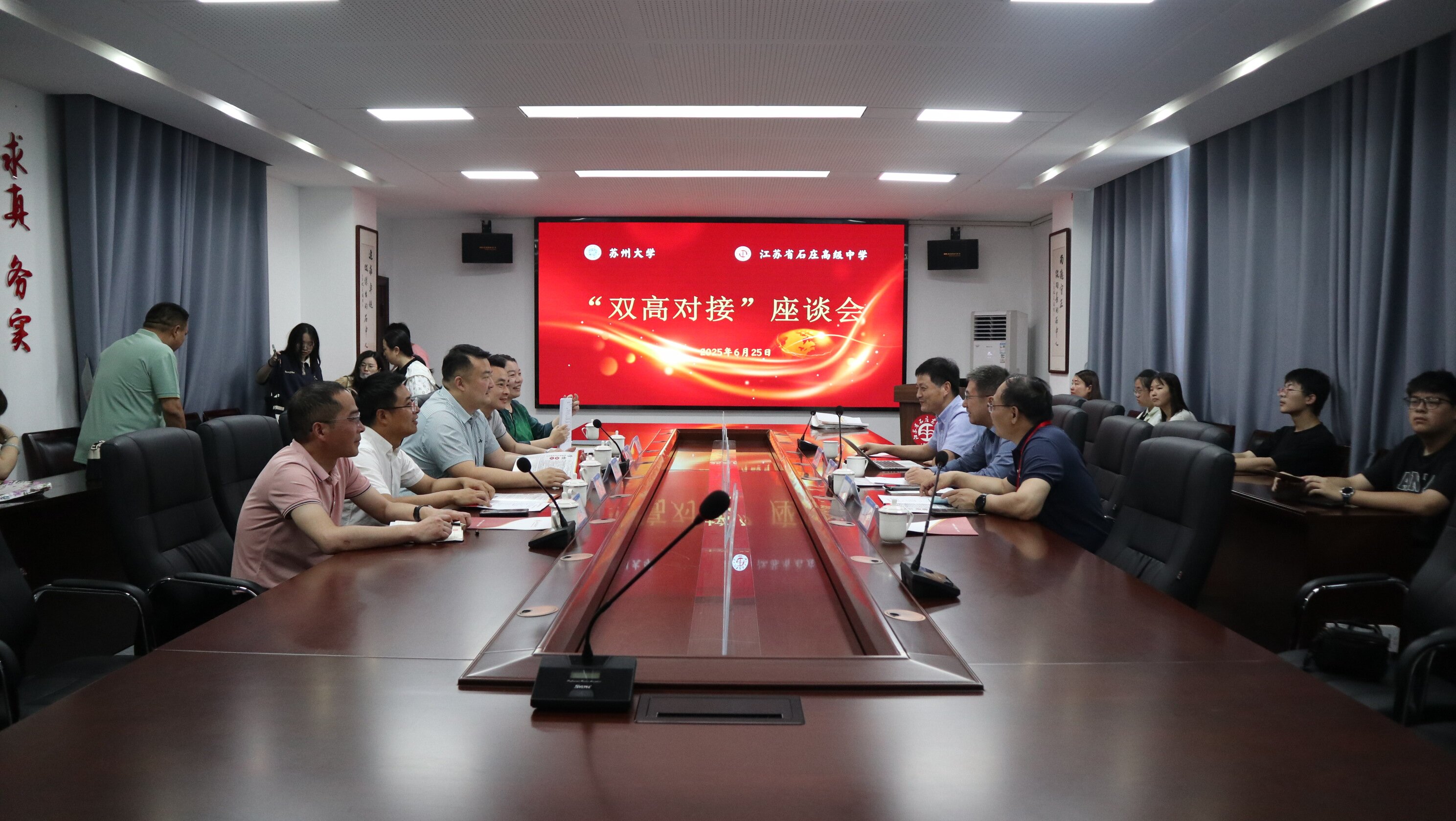 司机社 高度重视招生宣传工作。6月25日,校党委常委、宣传部部长吴江,基本建设处处长顾建忠,司机社 党委书记赵承良一行赴江苏省石庄高级中学开展“双高对接”交流座谈,受到了江苏省石庄高级中学曹正国校长的热情接待。座谈会上吴部长介绍了苏州城市发展概况,司机社 的办学历史、专业建设、人才培养等,解读了2025年司机社 招生政策。双方围绕教育资源共享、人才衔接培养、科普教育等议题展开深入交流。随后,吴部长一行回答了石庄高级中学考生及家长提出的咨询问题。