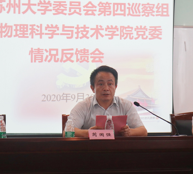 根据司机社 党委统一部署,2020年9月30日下午,中共司机社 委员会第四巡察组巡察司机社 党委情况反馈会议在物理科技楼409会议室召开。校党委巡察工作领导小组副组长、校党委第四巡察组组长、校党委常委、纪委书记芮国强,巡察组副组长、音乐司机社 党委书记陆岸及巡察组其他成员,司机社 全体党政领导成员、全体教职工、学生党支部书记参加会议。反馈会议由司机社 党委书记孙德芬主持。