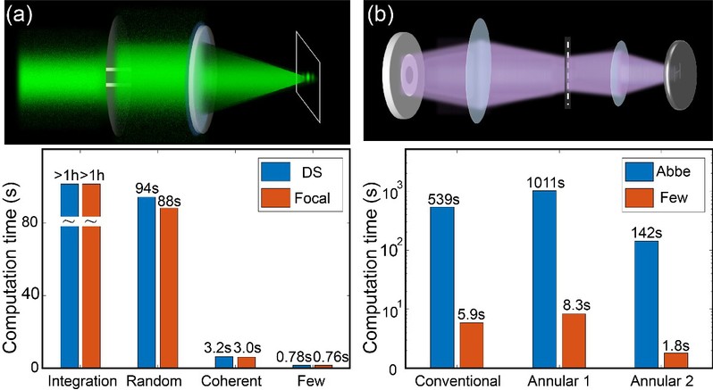 部分相干光在光学成像领域具有重要的理论价值和广泛的应用前景。它不仅能够改善照明的均匀性、提高成像分辨率,还能有效抑制散斑噪声,在超分辨成像、全息成像等前沿光学技术中发挥着不可替代的作用。然而,在一些如光刻系统、复杂环境下的激光实时探测等应用场景中,如何高效地生成和计算部分相干光束仍然是一个关键挑战,快速且准确的部分相干光场合成方法至关重要。