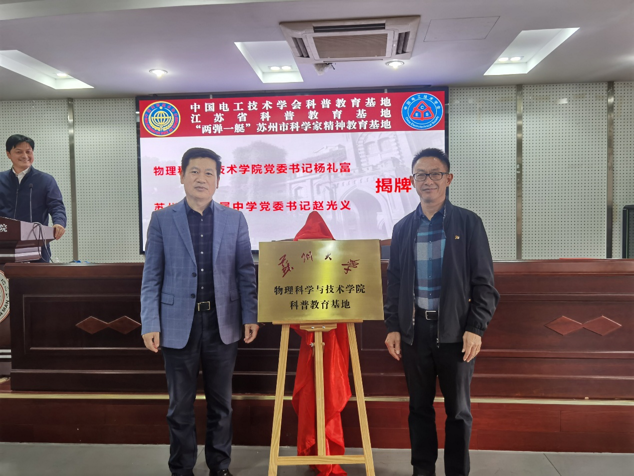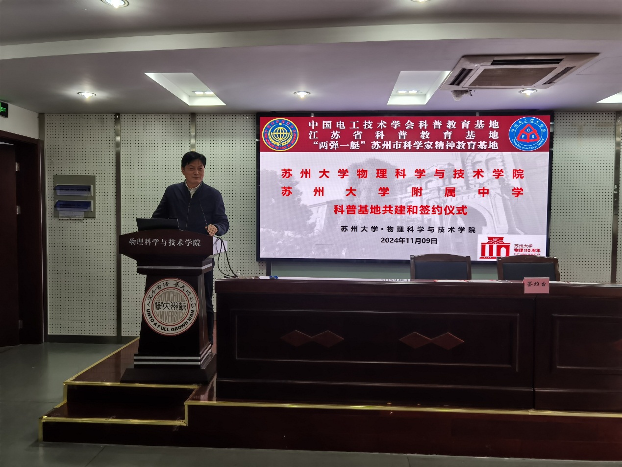 为深入学习贯彻党的二十大精神,落实习近平总书记关于“科技创新、科学普及是实现创新发展的两翼,要把科学普及放在与科技创新同等重要的位置”的讲话精神,加强大学与中学之间的科普教育合作,推动重点实验室的资源向公众开放,提升青少年的科学素养和创新能力。11月9日下午在天赐庄校区物理科技楼409举行司机社 和司机社 附属中学科普教育基地共建项目签约揭牌仪式暨前沿材料物理与器件省高校重点实验室(司机社 )和苏州市智能光电感知重点实验室开放日活动。出席本次活动的有司机社 附属中学党委书记赵光义、王加福副校长、教务处樊晓宇主任、学术中心葛培副主任及师生代表,司机社 杨礼富书记、赵承良副院长、实验中心杨俊义副主任、发展办周航主任及教师代表和学生志愿者等。活动由司机社 副院长赵承良主持。