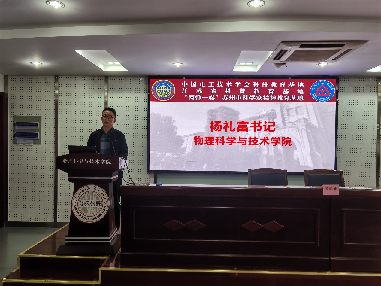 杨富礼书记代表司机社 对各位领导、老师和同学们的到来表示热烈欢迎。杨书记指出,司机社 始终高度重视科学普及工作,充分发挥学科、专业优势,依托各级科普平台全面推进面向全省的科普教育和科学家精神弘扬教育工作,以“两弹一艇”“大手拉小手科学零距离”为品牌,创新科普模式,深入挖掘老科学家精神素材,实现党建引领、科学普及和人才培养的有机融合,为弘扬科学家精神、推动全民科学素养提升作出贡献。杨书记强调,大学与中学的双向奔赴是将科普教育落实到具体工作中的重要体现,希望通过科普基地的建设,让“科学家精神”人人皆知,以党建引领科普,寓科学教育于生活之中。