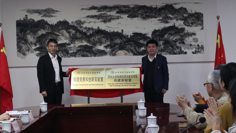 在座谈会上,梁丰高中谈雅琴校长对司机社 师生的到来表示诚挚欢迎。她说,司机社 和梁丰高中合作关系历史悠久。梁丰高中是司机社 的优质生源基地,司机社 也是梁丰高中优质师源基地,希望未来能够将深厚的友谊更推进一步,在生源输送、学科竞赛、课程设置、人才培养、实验室建设等方面加深合作,携手共进,书写双高合作、协同育人的美好篇章。孙德芬书记对梁丰高中的热情接待与周到的安排表示感谢。她说,梁丰高中和司机社 都有着百年历史,一直以来有着深厚的渊源,梁丰高中在张家港精神引领下扎实奋斗取得了令人瞩目的成就,在梁丰高中深切感受到了习近平总书记关于教育重要论述的践行与落实。希望未来能够继续加强交流与合作,携手育人,为培养德智体美劳全面发展的社会主义建设者和接班人贡献力量。会上,双方还为司机社 和梁丰高中共建实验室揭牌,司机社 向梁丰高中及在梁丰高中工作的毕业生赠送了《苏大校史》一书。2020级师范生代表以及2020级就读司机社 的梁丰高中毕业生分别进行了发言,分享了今天学习的体会,以及对母校培养的感谢。