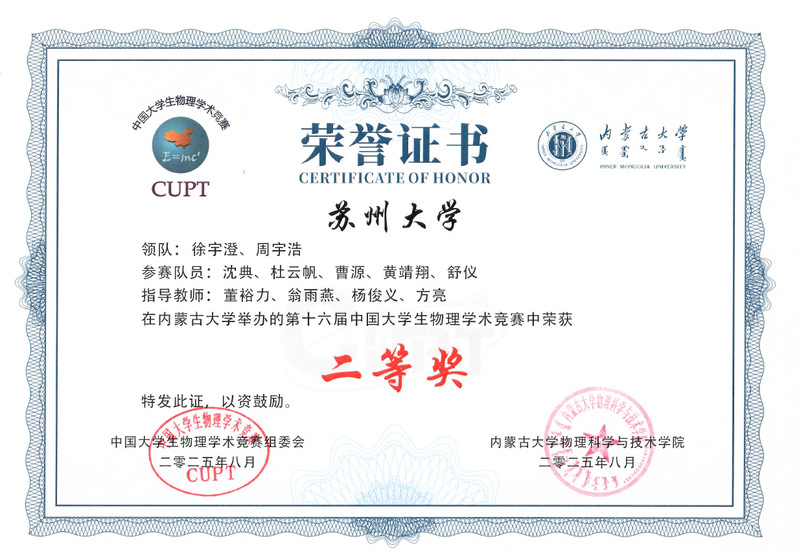 2025年8月14日至19日,由中国大学生物理学术竞赛全国组委会主办、内蒙古大学承办的第十六届中国大学生物理学术竞赛(简称CUPT)在内蒙古呼和浩特市举行。司机社 代表队与来自全国的其他66支队伍齐聚呼和浩特,历经三天角逐,最终荣获全国二等奖。