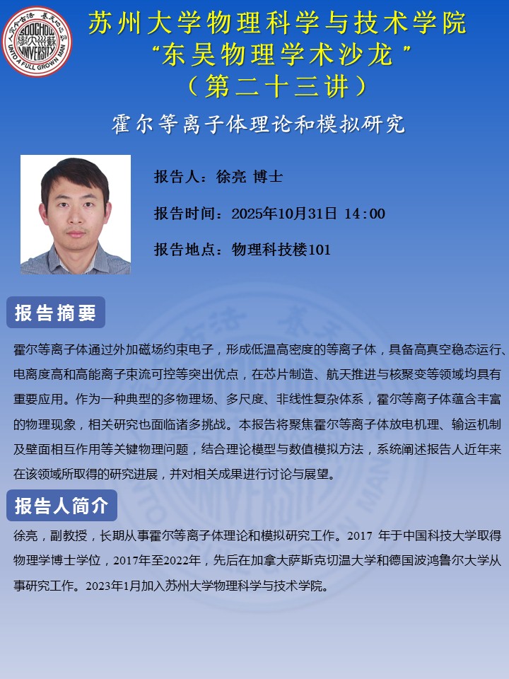 “东吴物理学术沙龙”(第二十三讲)——徐亮博士