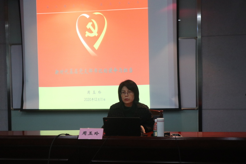 周玉玲部长作了题为《新时代基层党支部书记的使命与担当》的专题报告。周部长从回顾历史镌刻初心坚定信仰和基层党支部打通最后一公里等两个方面,生动阐述了新时代党支部书记的使命和担当。周部长强调,党支部书记要做到学好文件知责任,落好“七子”抓头雁,八大专题显成效。希望广大基层党支部书记做到脑中要有一张图,心中要有一本账,腹中要有一盘棋,手中要有一杆秤,切实打通党建的最后一公里。