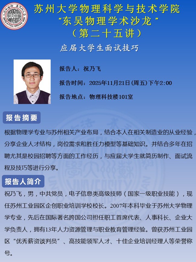 “东吴物理学术沙龙”(第二十五讲)——祝乃飞