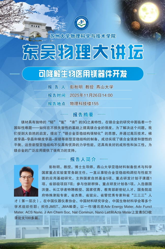 “东吴物理大讲坛“——彭秋明教授