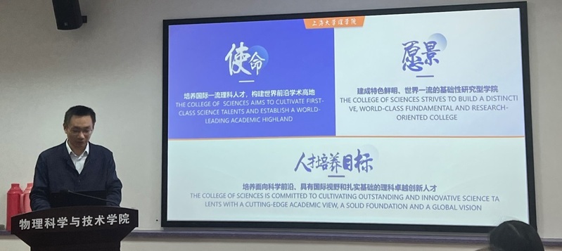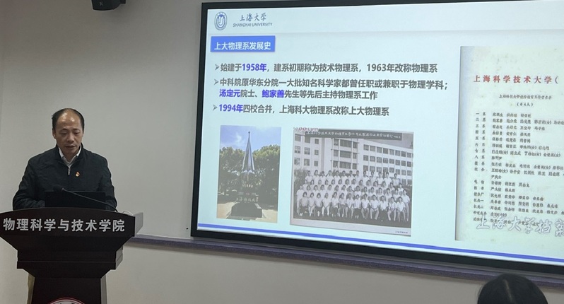 上海大学理司机社 副院长戴晔从科研平台、科研项目、科技奖励、教学成果等方面对上海大学理司机社 的整体情况进行了介绍。理司机社 物理系党总支书记颜明从教学团队、师生情况、现有机构等方面介绍了物理学科的发展。