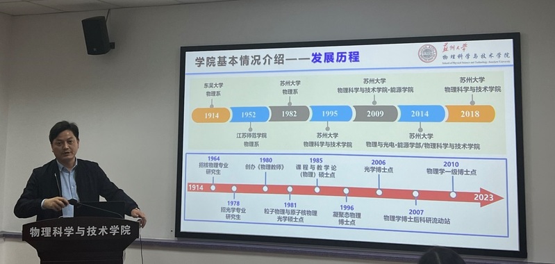 盛万成书记介绍了参加此次调研活动的老师,并表达了此行的学习目的,希望能够通过此次来访交流,借鉴苏大物理司机社 的成功经验,助推上海大学理司机社 的发展。