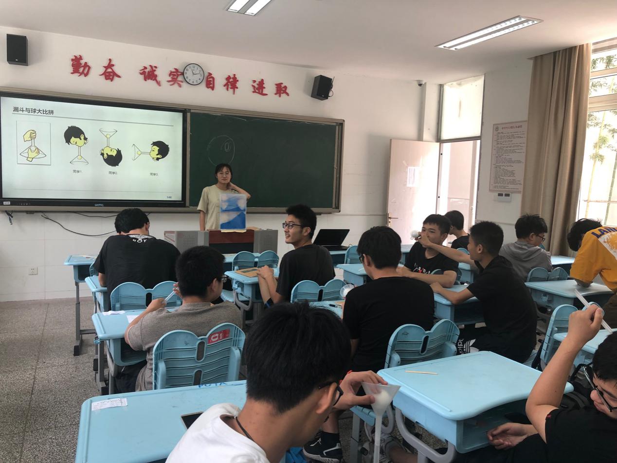 首先,“PT高中行”实践团队的主讲人简单的介绍了本次宣讲的主题:为在校的高一物理竞赛的学生们科普各种实践类的物理知识,体验实验的乐趣。同时也宣传了中学生物理学术创新竞赛(JSYPT)以及中国大学生物理学术竞赛(CUPT),为感兴趣的同学提供了询问通道。随着“PT高中行”实践团队成员们在同学们的热烈的掌声欢迎下,由一段本次宣讲所涉及的趣味实验视频合集拉开了科学宣讲的序幕。