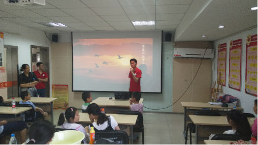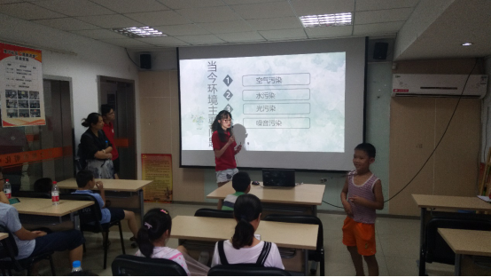 古朴的建筑历经着阳光的炙烤依然矗立,蟠枝崎岖的树木苍翠挺立,团队的成员们跟随着通讯组前行,感受着淳朴生活的静谧,被里河社区生活的人们对生活的惬意所感染。折了几个弯便到了里河社区中心活动室,社区负责人见到公益团成员的到来,热心地打开投影设备和空调,帮我们调试设备。大约半个小时后,社区里的小朋友们在家长的陪同下陆续到场,活动便在大家的满心期待下开始了。