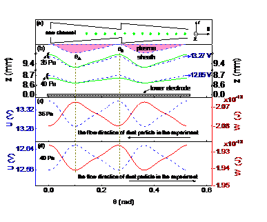本项研究首次将费曼棘轮的思想扩展到尘埃等离子体实验系统中,提出并设计了尘埃等离子体棘轮实验装置。在这套尘埃等离子体实验系统中,通过调节射频等离子体实验参数,率先实现了尘埃等离子体的整流和反转,即等离子体中尘埃颗粒的可控性整流。在这套试验系统中,射频等离子体点亮之后,在锯齿状沟槽内引入微米尺度的尘埃颗粒之后,系统就能自发地将射频等离子体中杂乱无序的能量涨落有效地利用起来,使得锯齿状沟槽中的尘埃颗粒持续不断地定向运动,像珠链一般自动旋转。实验操作中通过调节射频等离子体气压和功率等参数,就能控制这些尘埃颗粒运动速度的大小与方向,并不需要改变系统其他任何参数。对这一实验系统中尘埃颗粒的定向运动机制的深入研究发现,棘轮运动中有两大关键因素,即不对称性的棘轮势场和尘埃颗粒的集体效应。进一步的数值模拟与实验结果吻合得很好,而且更进一步定量化地揭示了尘埃等离子体棘轮体系的整流机制的核心两大因素,与实验发现完全一致。定量化的分析结果发现,带电尘埃颗粒所受棘轮势的特性与射频等离子体参数、棘轮结构等因素密切相关,通过改变等离子体参量可以控制棘轮势的方向,进而控制尘埃颗粒的整流方向。最后,文章还指出了该尘埃等离子体棘轮在颗粒分离方面的应用前景。