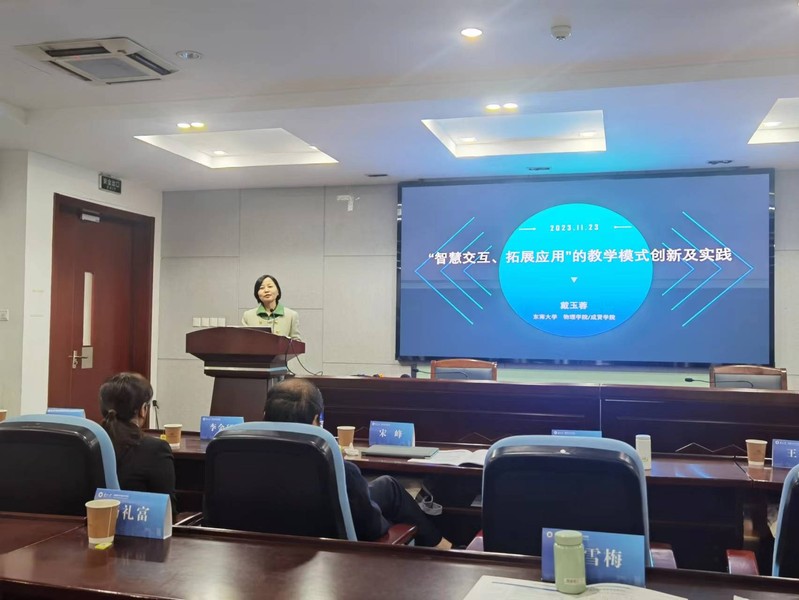 报告二由东南大学成贤司机社 副院长、江苏省教学名师戴玉蓉教授主讲,报告题目为以“智慧交互、实时反馈、拓展创新”为主征的教学新模式。戴教授从教学内容、教学模式和研学环境三方面阐述了将教学改革和建设聚焦到专业人才培养的基础环节的实践经验;以“自动驾驶”、“电磁黑洞与隐身材料”、“深空探测”等为案例,详细介绍了应对未来科技发展支撑现代工程应用的新工科实验项目的设计和体系建设;概括了将教学过程与信息技术融合,教学内容与工程案例结合,线上线下结合、课内课外延伸、理论实验互补、知识应用互融的大学物理实验智慧教学模式。