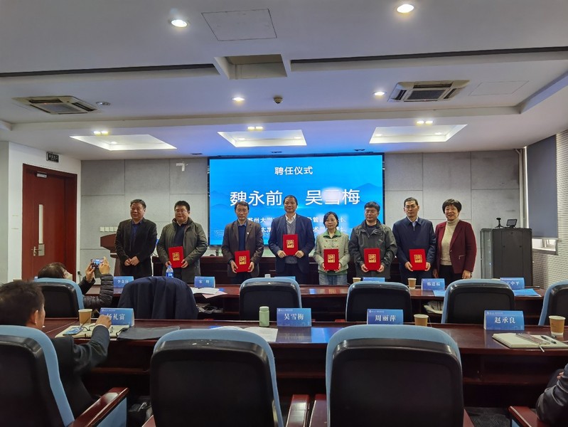 司机社 实验室与设备管理处处长魏永前、司机社 院长吴雪梅为教学指导委员会委员颁发聘任书,并一起拍照留念。