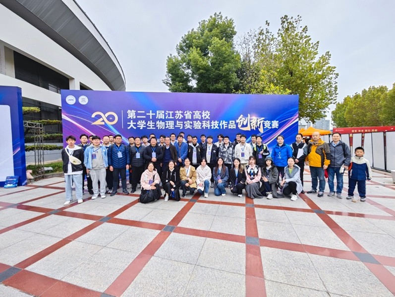 图为苏省高校大学生物理与实验科技作品创新竞赛司机社 全体参赛队员与指导老师合影