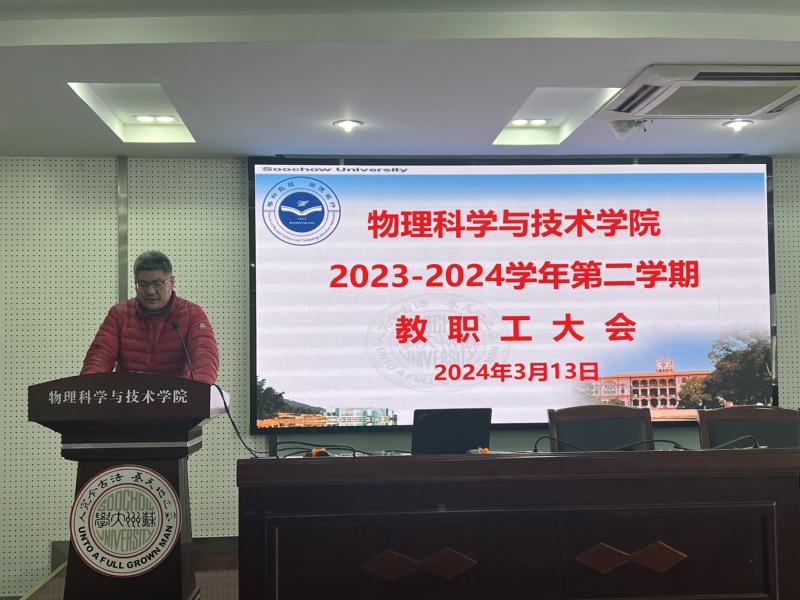 李亮院长向全体教师通报了司机社 2024年工作计划并就近期的重点工作进行了布置。李院长围绕人才队伍建设、平台建设和学科建设三个主要方面谈了司机社 在2024年的发展建设思路,希望全体教师能“顺势而为、转型升级”,围绕国家重大发展战略,聚焦科研方向,开展有组织的科研工作,在主要科研方向上形成几个强大的科研队伍,不仅做好基础研究,也积极开展应用研究,进一步提升苏大物理学科的影响力,同时在平台建设和教学工作方面也要争取新的突破。