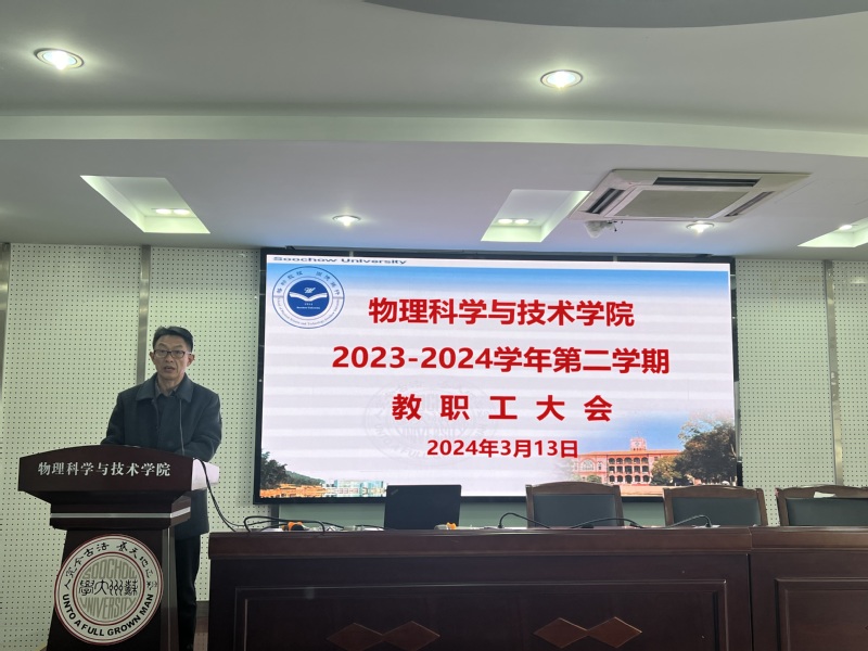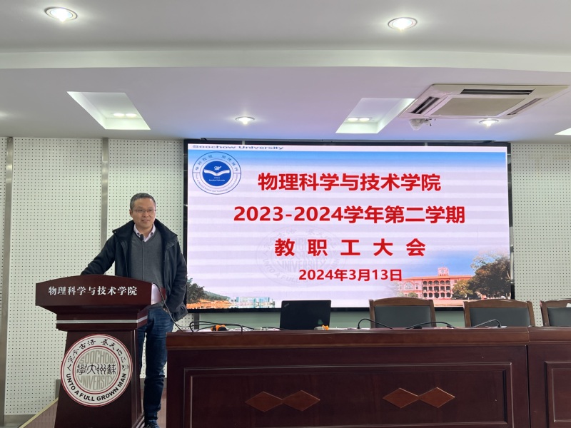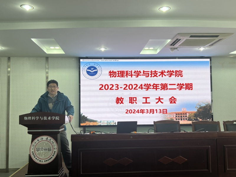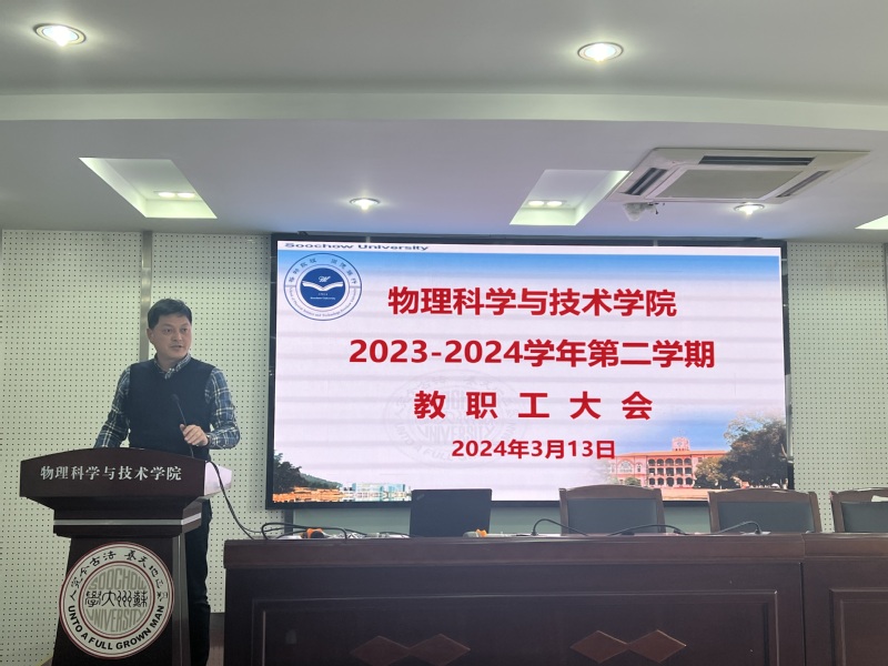 赵承良副院长介绍了2024年度科研、创收及物理学科110周年庆祝活动等方面的工作计划以及近期主要工作。科研工作方面将继续做好“东吴物理”系列活动,并结合物理学科成立110周年庆祝活动开展系列活动,进一步加强平台建设,争取新增科研平台,积极申报国家级科普基地;创收工作方面将积极拓展新渠道,全力做好创收工作提升教师幸福指数。杭志宏副院长就本学期本科生和研究生教学培养管理方面的工作作了介绍,主要包括本硕博一体化培养、加强基层教学组织建设、提升研究生论文质量、积极拓展优质生源和国际生源等。杨朝晖副院长主要布置了本学期实验室安全重点工作。司机社 制定了“除患攻坚”和“治本攻坚”的工作方案,将通过定期开展实验室安全检查、对师生的安全教育培训、进一步细化实验室分级分类管理等方式进一步做好实验室安全管理。