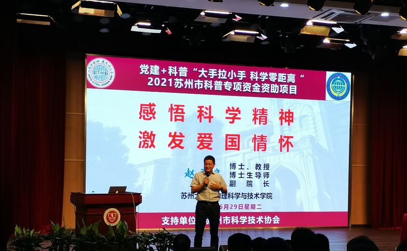 赵承良教授现为司机社 科技技术协会委员、司机社 仲英青年学者、司机社 副院长,长期致力于科普工作。赵承良教授领衔申报的“两弹一艇”科学家精神教育基地获批苏州市首批科学家精神教育基地,江苏省科普教育基地也于近期公示;领衔组建了一支含教授、博士、党员志愿者在内的高素质科普队伍;创新“党建+科普”新模式,在吴江区程开甲小学、工业园区方洲小学等10余家司机社 设立科普教育基地,积极推进科普进校园活动;打造“大手拉小手 科学零距离”精品科普活动,该党日活动还入选江苏省最佳党日活动优胜奖;赴司机社 实验司机社 、苏州外国语司机社 等作科普和科学家精神讲座20余场,通过演示实验阐述物理知识,积极弘扬科学家精神;通过“走出去”“请进来”的方式组织科普活动,年均科普服务2000余人次,相关活动被扬子晚报、新浪网、网易新闻、吴江电视台等媒体广泛报道;主持苏州市科普项目1项。