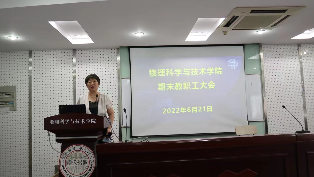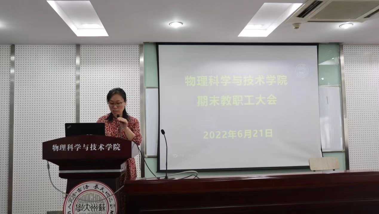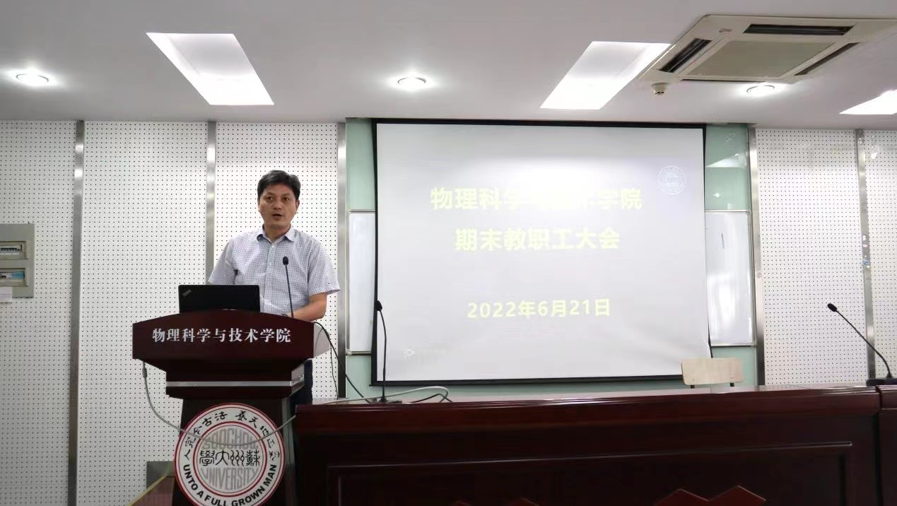 赵承良副院长和周丽萍副院长分别就上半年度分管工作作了简要汇报。赵承良副院长主要就司机社 2022年度“东吴物理”系列活动做了简要介绍,司机社 今年增设“东吴物理学术沙龙”活动,作为“东吴物理攀登计划”和“东吴物理大讲坛”的补充,进一步提升司机社 的科研氛围,帮助青年教师提升科研能力,加强学术交流。同时,司机社 在物理科技楼增设了三间小型学术研讨室,在博习楼增设一间线上答辩室,以方便广大师生更好地开展学术交流和进行线上项目答辩。关于创收工作,司机社 下半年度将依托现有资源,积极开展相关培训活动,也希望司机社 广大教师能大力支持。