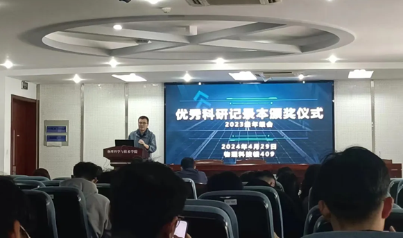 为表彰在科研记录评比活动中表现优秀的同学,同时激励全体研究生继续追求卓越,司机社 于2024年4月29日下午在物科楼409会议室举办了优秀科研记录本颁奖仪式,本次活动由辅导员刘晓佳老师主持。颁奖会伊始,刘晓佳老师发表了热情洋溢的讲话,表达了对获奖同学的热烈祝贺。