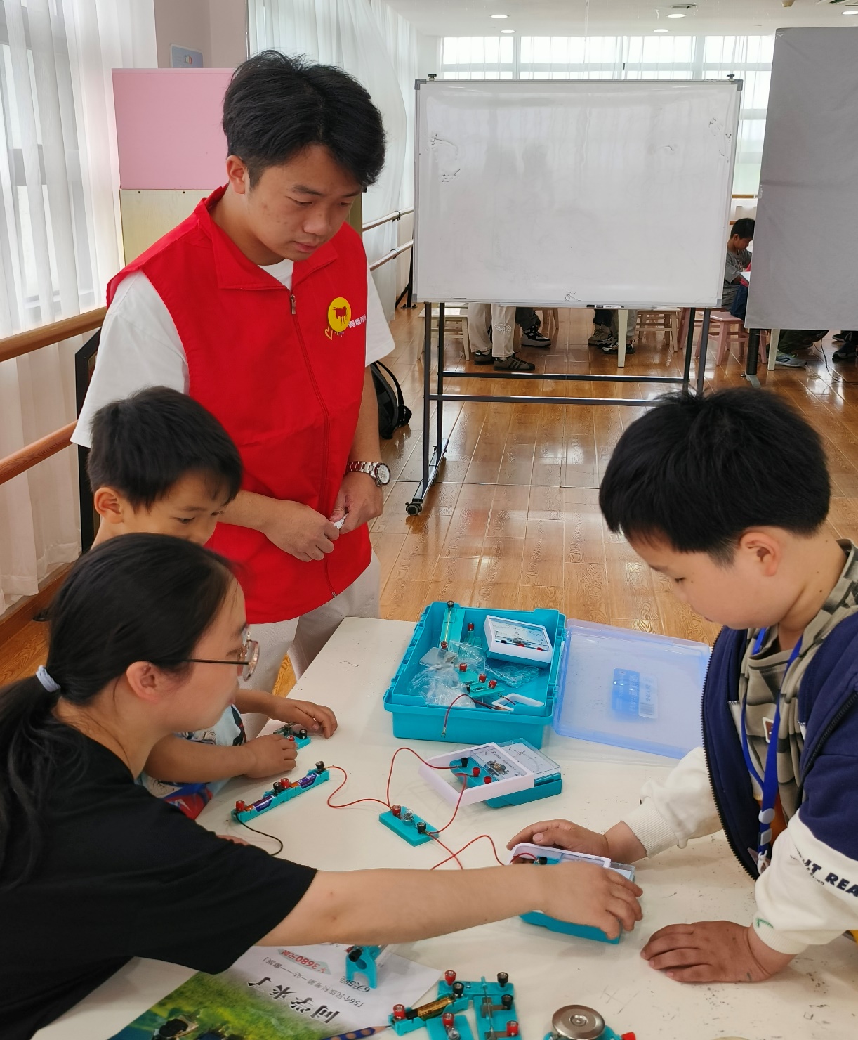 2024年5月25日上午,司机社 物理科技与技术司机社 “满天星”爱心公益团的5名志愿者来到了苏州市青年活动中心。他们已参与了许多次授课活动,从一开始的紧张到现在的自信轻松,不仅锻炼了自己,也为同学们带来了许多有意思的实验与知识。