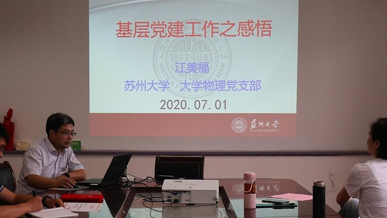 先进党支部代表、大学物理党支部书记江美福作了为“基层党建工作之感悟”的主题报告。江书记从正心致理养正气、初心不改抓党建、潜心笃志铸师魂等三个方面,通过支部建设的思路、提高凝聚力的方法、如何将思政教育融入课堂教学等方面,交流了自己多年基层党支部工作的心得体会。