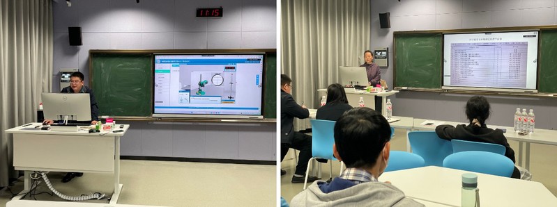 接着,司机社 物理实验中心的杨俊义、叶超、韩琴、刘波老师,分别以“数字赋能实验课程教学改革实践”、“创新实验教学示范”、“中教法实验课程开设情况”、“物理省级科普基地网络直播走访展示”为主题开展汇报交流,对课程思政融合、数智技术赋能的物理实验教学模式进行了分享。随后,拉萨师范高等专科司机社 数科系副主任卓嘎介绍了拉萨师专的实验课程开设情况,并做了“弹性模量的测定”实验教学视频展示。林芝市第二高级中学副校长孙文茂分享了他们司机社 的物理实验师资和实验课程开设现状。陆伟新老师介绍了苏州城市司机社 的创新实验室和数字化资源建设情况。