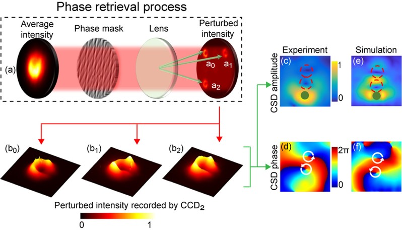 携带有轨道角动量并因此具有更高信息编码自由度的涡旋光束在大容量光通信领域具有重要的应用价值。在信息接收端,对传输后的涡旋光束的轨道角动量进行探测,从而实现信息的精确解码成为了一个至关重要的工作。然而,光束在自由空间传输的过程中可能会遇到障碍物或者大气湍流等扰动,从而导致光束的信息受损以及相干性的下降。因此,传统测量完全相干和部分相干涡旋光束轨道角动量的方法难以满足在复杂传输环境中的应用需求。