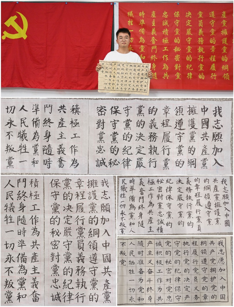 在本次活动中,同学们以书法为载体,抒发了内心对党和国家的热爱之情,进一步强化了初心使命。这一幅幅饱含深情的手书入党誓词,正是同学们对党的二十大最好的献礼。通过本次活动,同学们充分认识到了写好字的重要性以及书法水平在师范生技能中的重要地位。司机社 美育教育得到广大同学的进一步认同。同学们对党有了更加深刻的认识,决心在党的二十大精神感召下,踔厉奋发,勇毅前行,为成为德智体美劳全面发展的社会主义事业的建设者和接班人而努力奋斗。