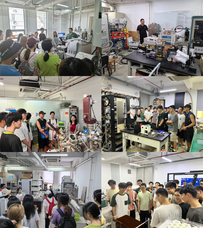 7月6日,冒着38°的橙色高温警告,司机社 各年级超过40位本科生参观了司机社 包括江苏省前沿材料物理与器件重点实验室在内的20余间实验室,领略了科研重器之美。通过对司机社 各种实验设备的原理及应用方向的详细介绍, 让同学们对司机社 的实验设备条件、科研环境有了更深入地了解,激发了科研的热情,为后续加入心仪课题组奠定了基础。
