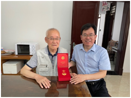 6月21日,沈明荣副校长走访慰问了司机社 顾汉炎、倪汉彬两位退休党员,司机社 党委书记孙德芬陪同走访。顾汉炎教授参加过抗美援朝战争,获得过“庆祝中华人民共和国成立70周年”纪念章;倪汉彬教授1989年荣获国家级优秀教学成果特等奖,受到时任国家领导人的亲切接见。
